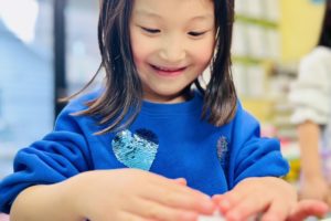 P1(2歳児クラス)、P2(3歳児クラス)のみんなは雪に興味津々!