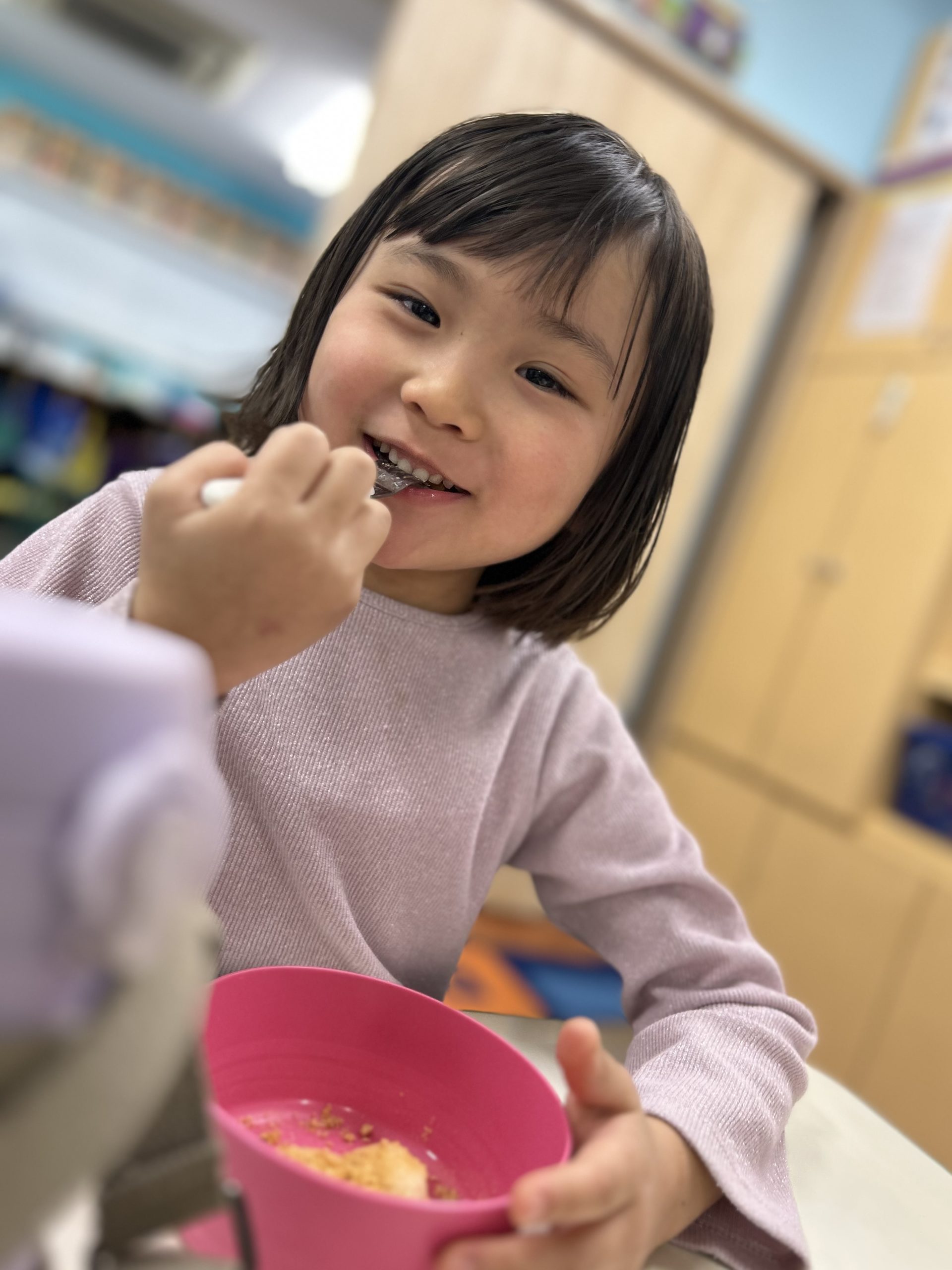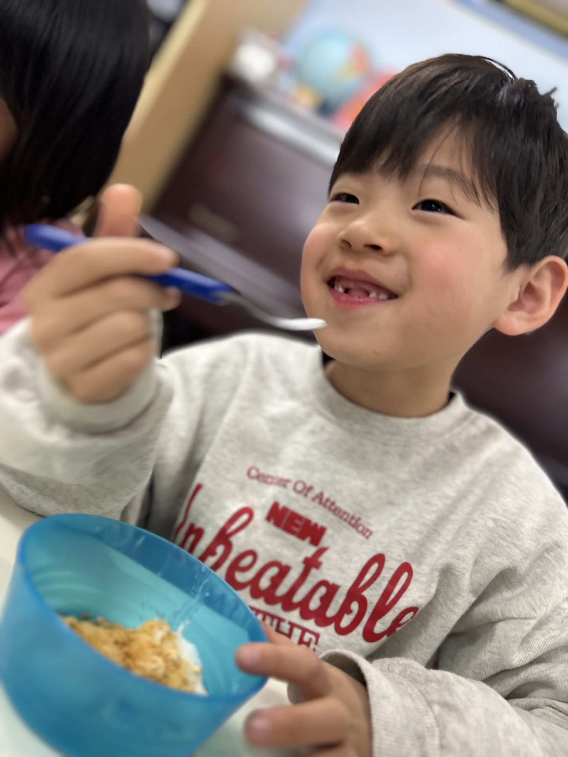 年長さんにとってはPAPで体験する最後のお餅つき。卒園前の楽しい思い出になってくれたら嬉しいです。