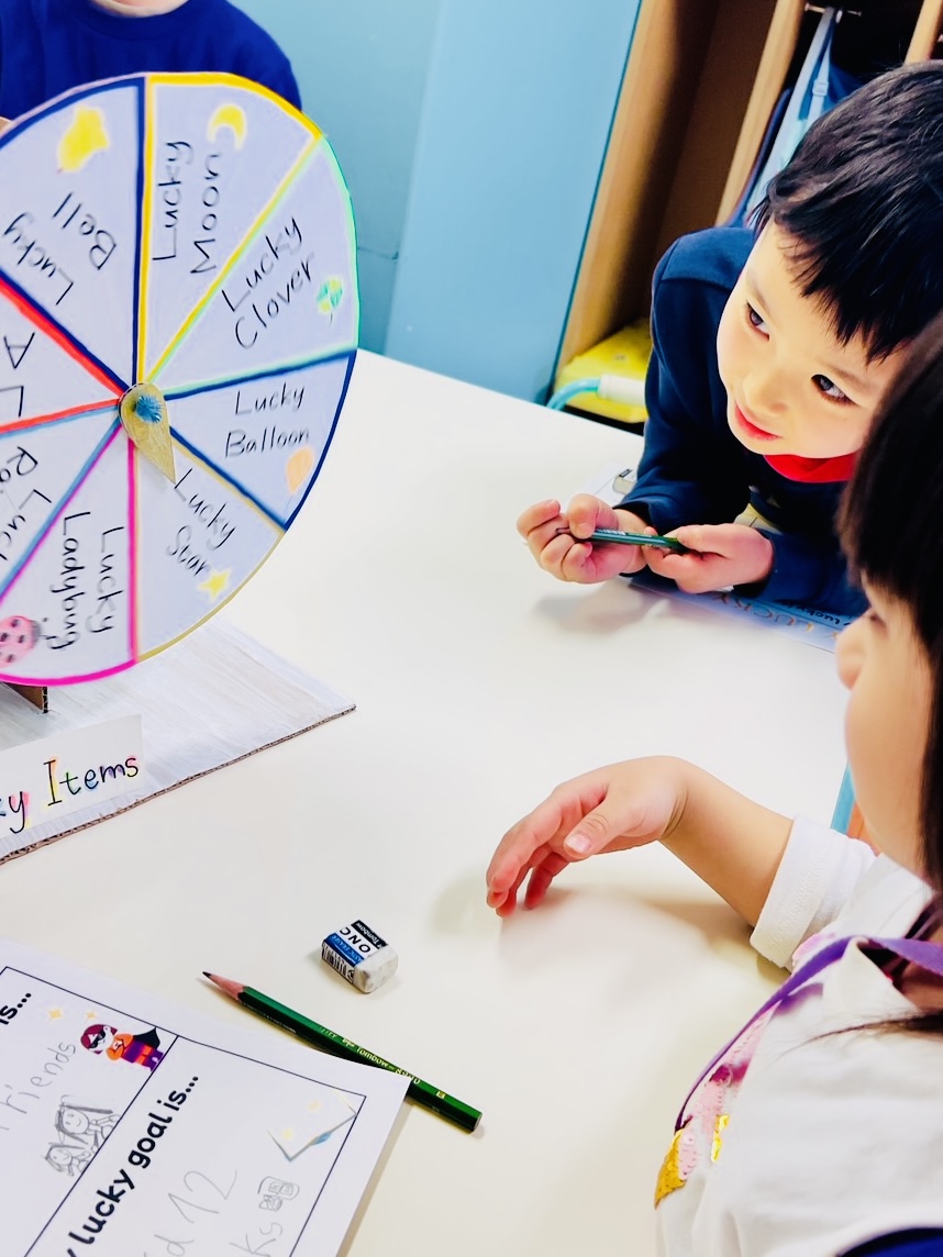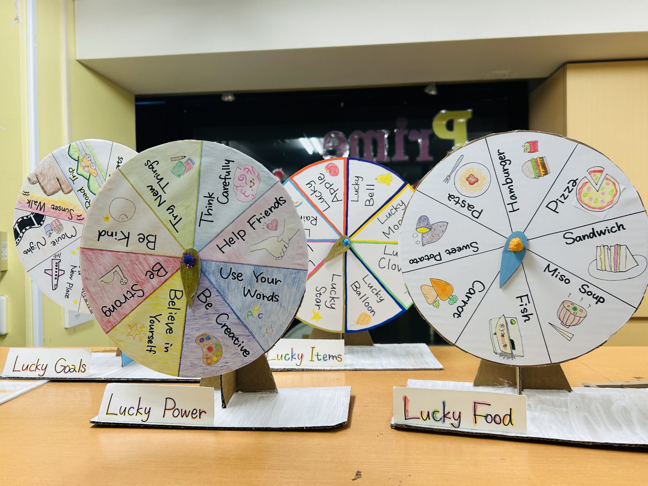 午後は手作り「Luckyルーレット」でみんなの今年の運勢を占いました。