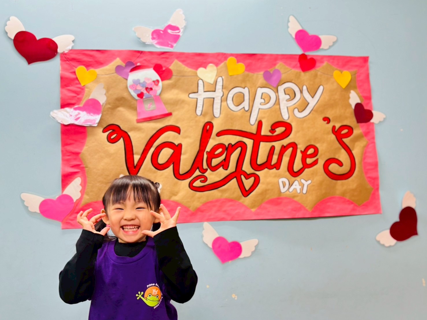 ガムボールに見立てたカラフルなハートに、子どもたちはそれぞれメッセージを書きました。