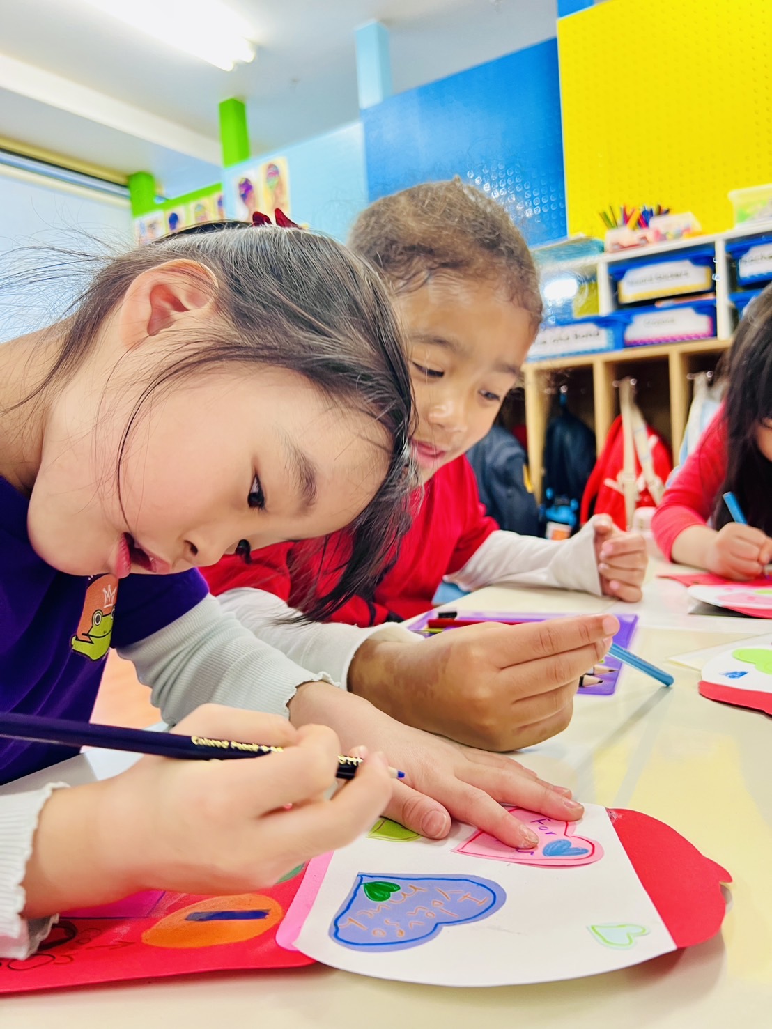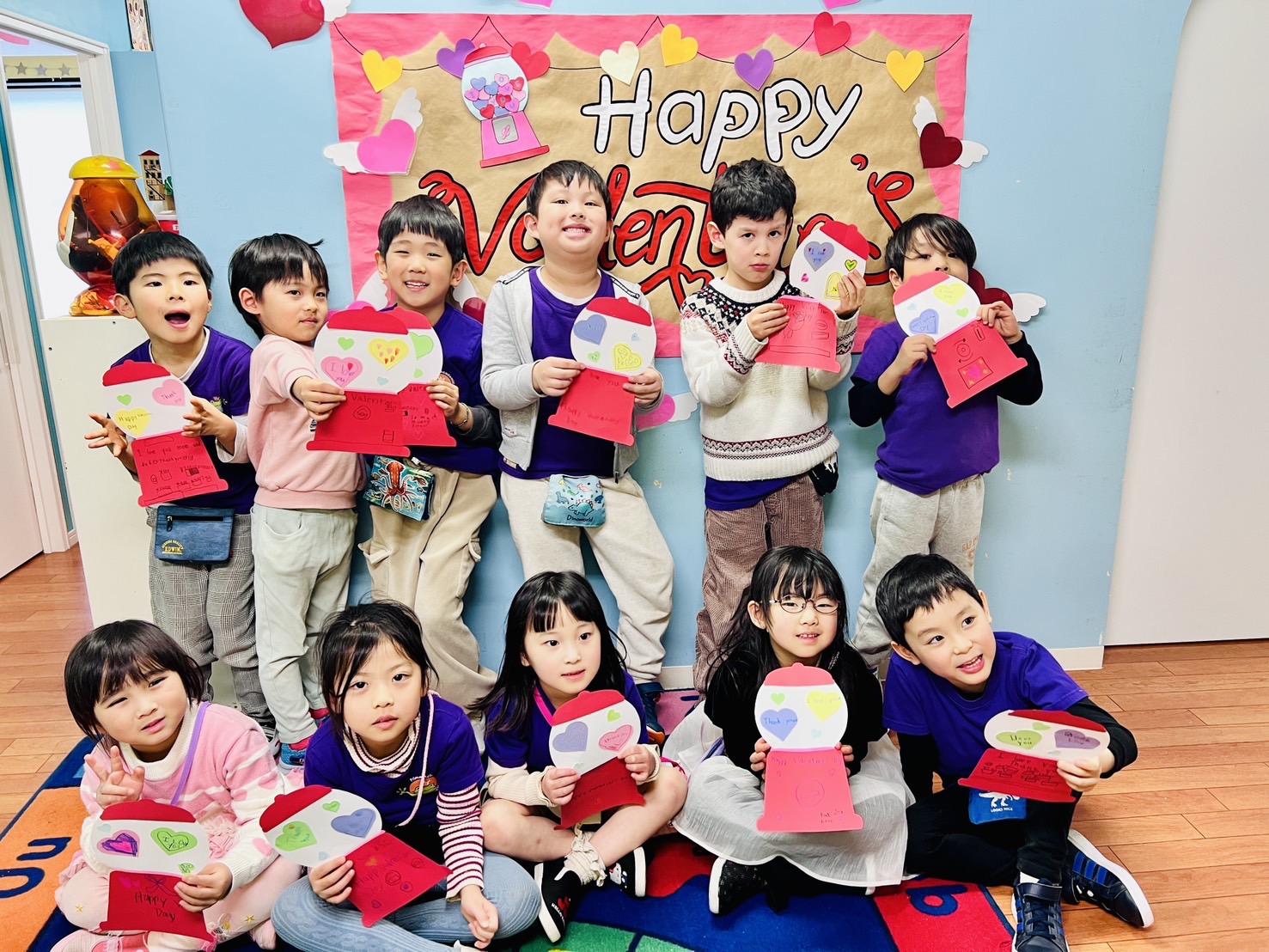 ガムボールに見立てたカラフルなハートに、子どもたちはそれぞれメッセージを書きました。
