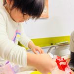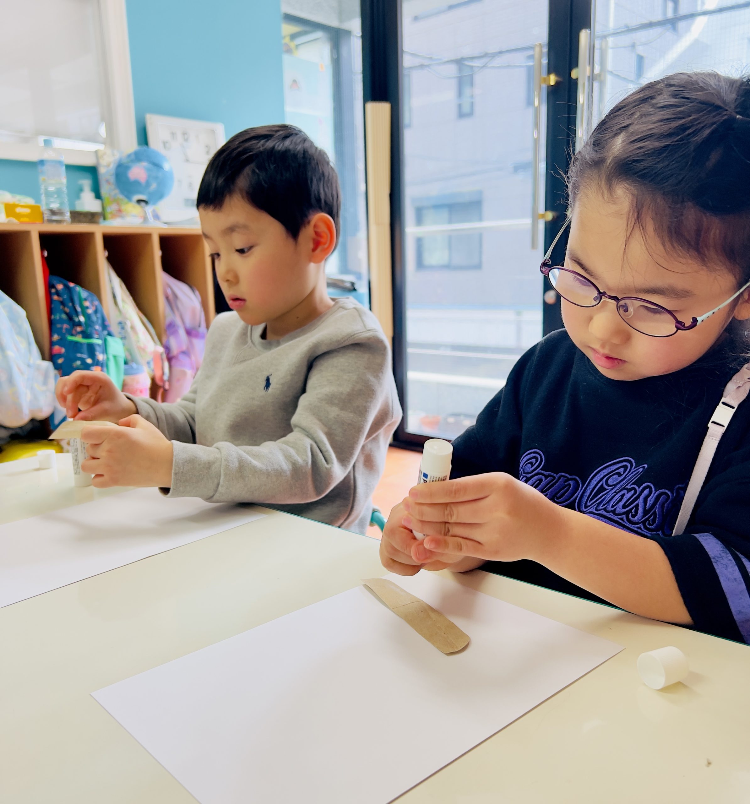 「フェルトはボンドかな?」「紙は糊でつくね!」と、素材に合わせて接着剤を使い分けることにも挑戦。指先の感覚をフルに使って、自分だけのスペシャルバーガーを組み立てていきました。