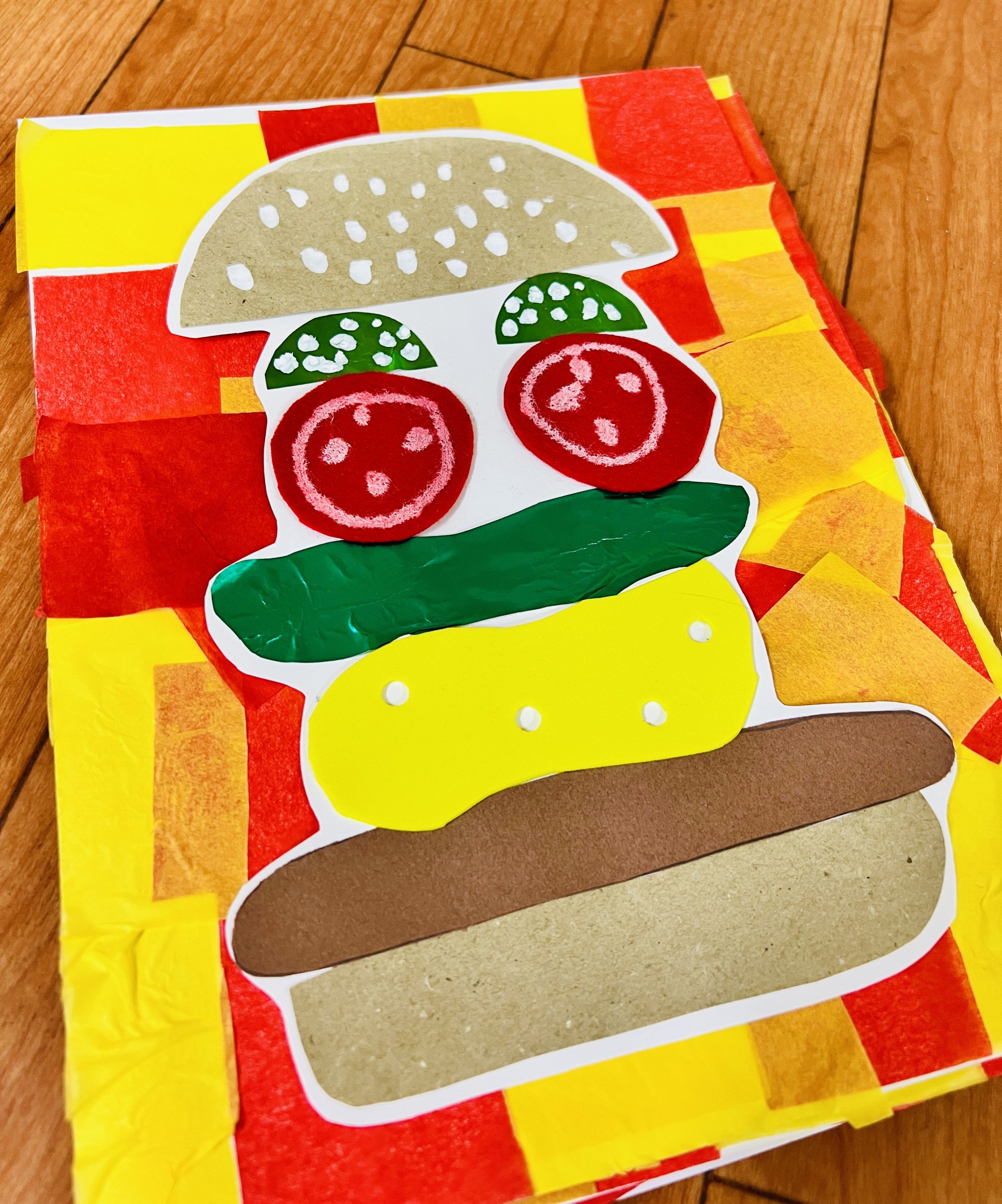 今日のアートは、みんなが大好きなハンバーガー作りに挑戦しました!