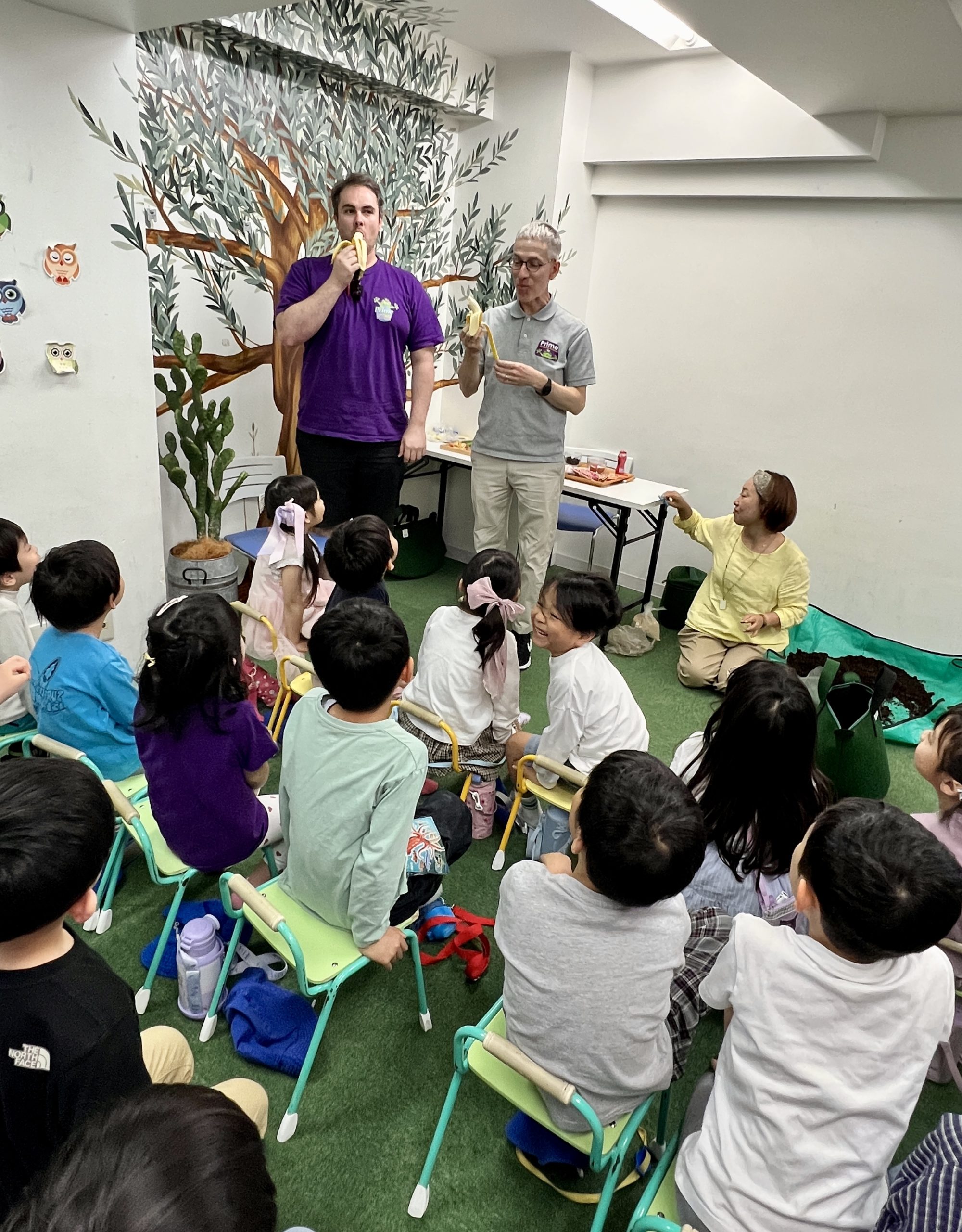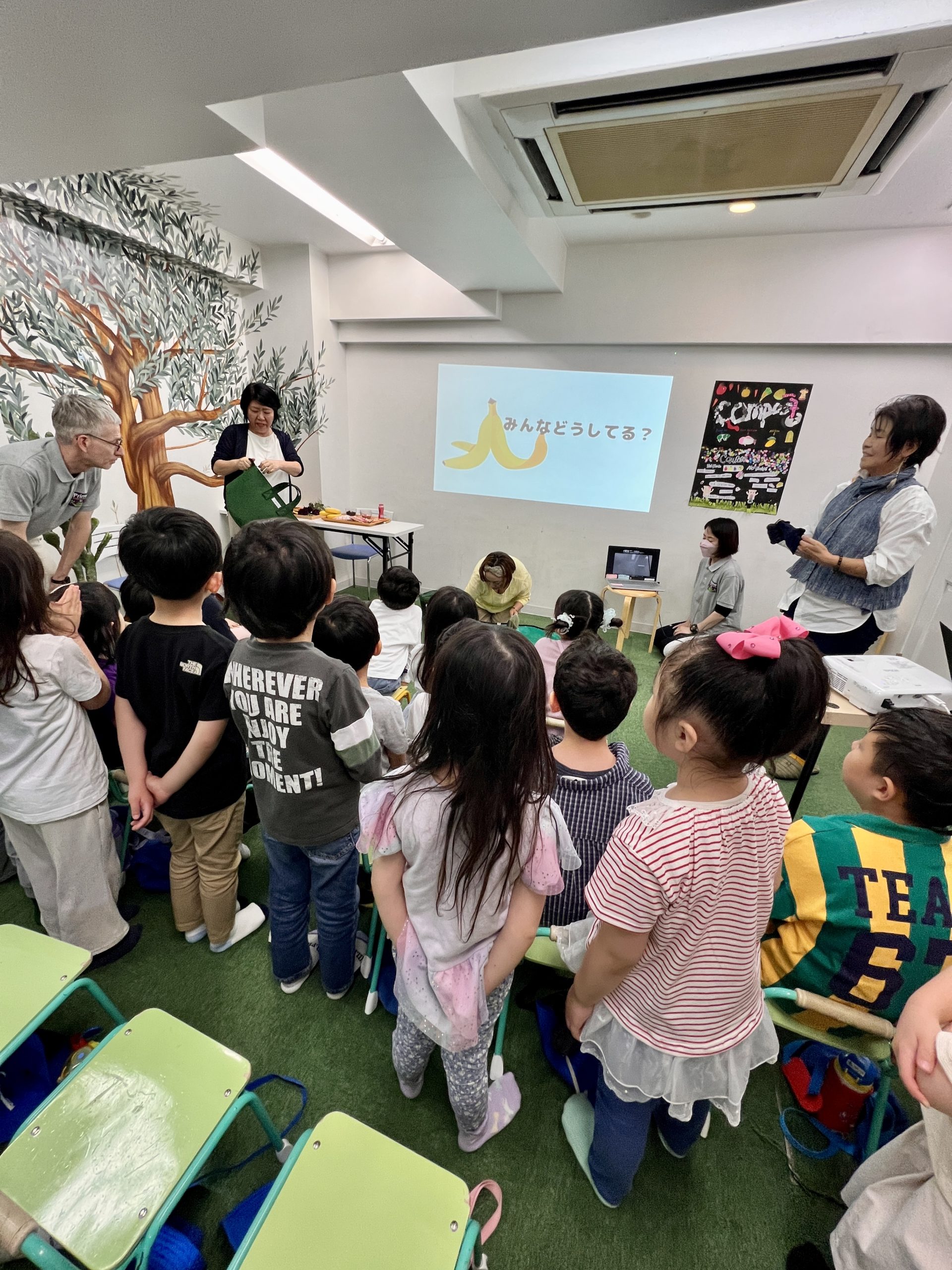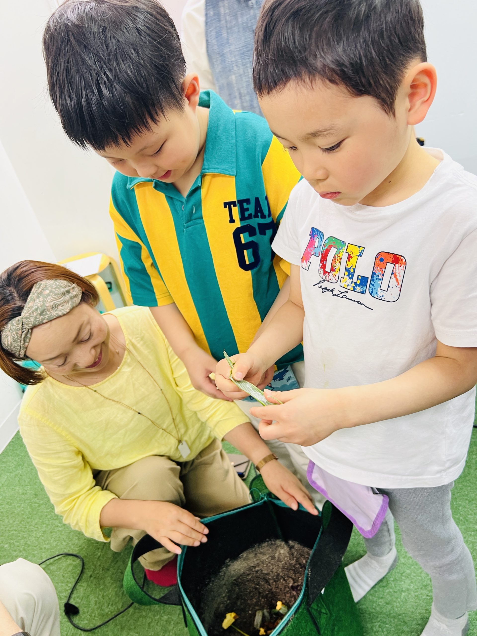 今日は、五反田校の年長クラス(Upper Class)のお友達と一緒に、特別なレクチャーを受けました。テーマは地球に優しい「コンポスト(堆肥)」です!