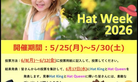 スクールが一年で最もカラフルで賑やかになる一週間「Hat Week(ハットウィーク)」を開催します! この期間中は、毎日「お気に入りの帽子」を被って登園OK! 「自分らしさ」を表現することを目的とした、子どもたちに大人気…