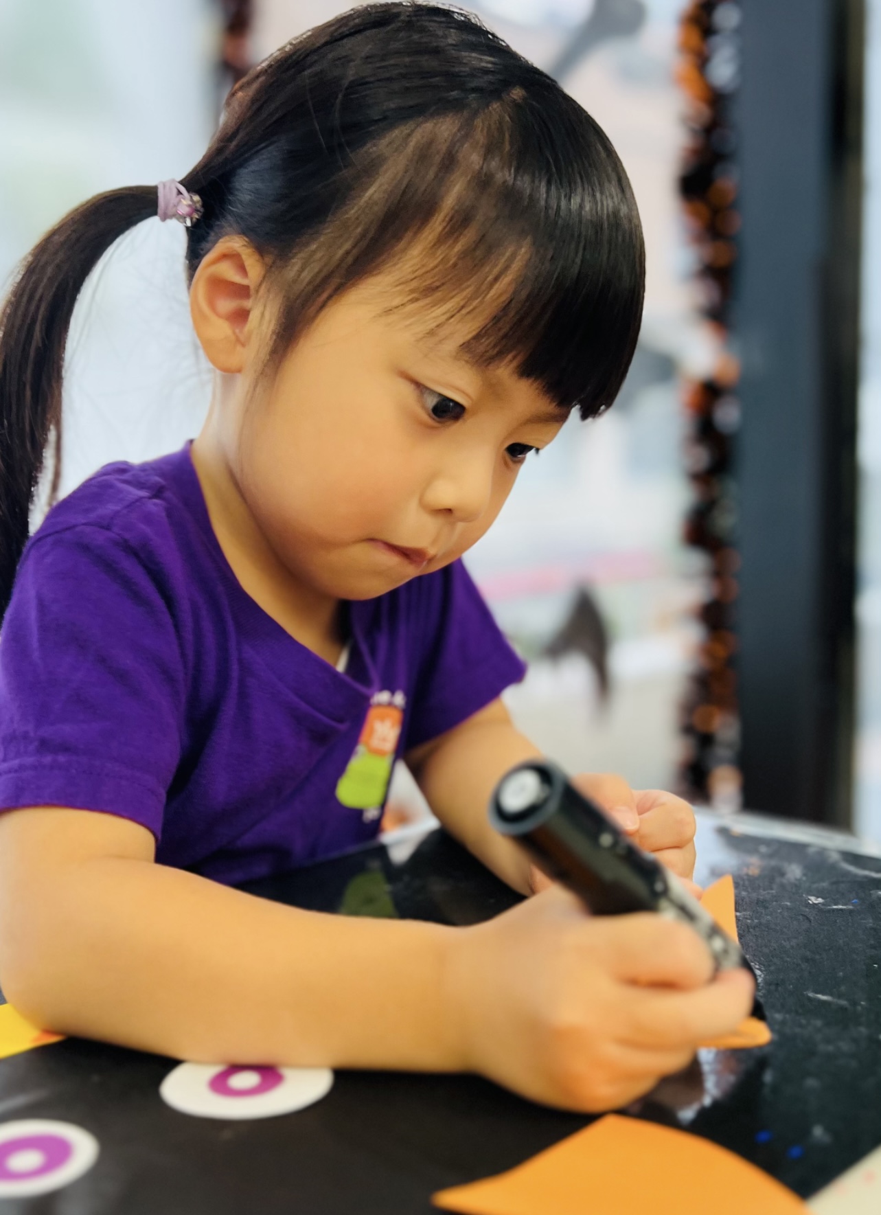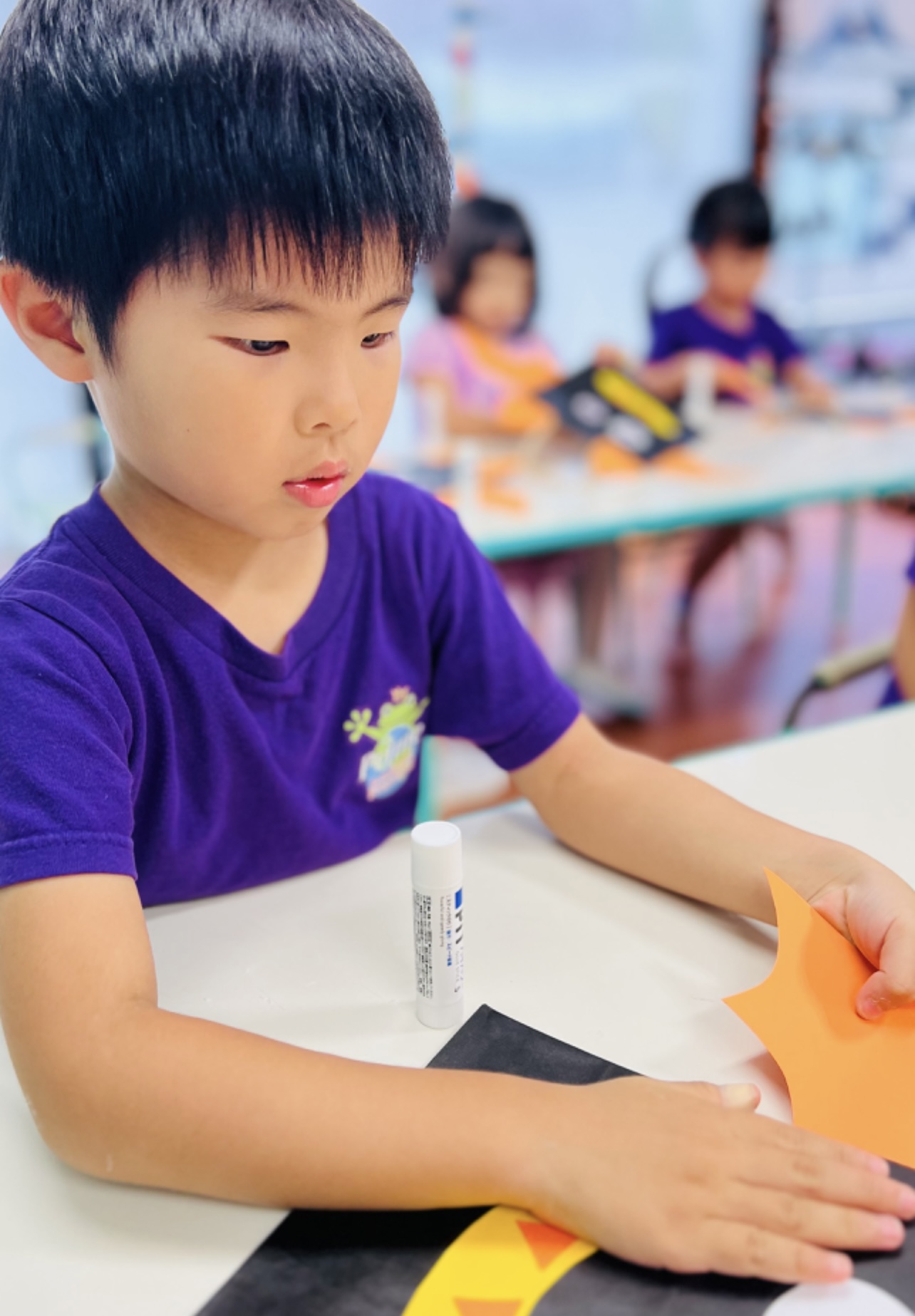 今年のトリックオアトリートの準備も着々も進んでいます。本日は、子どもたちが使うお菓子を入れるためのトリートバッグを手作りしました。