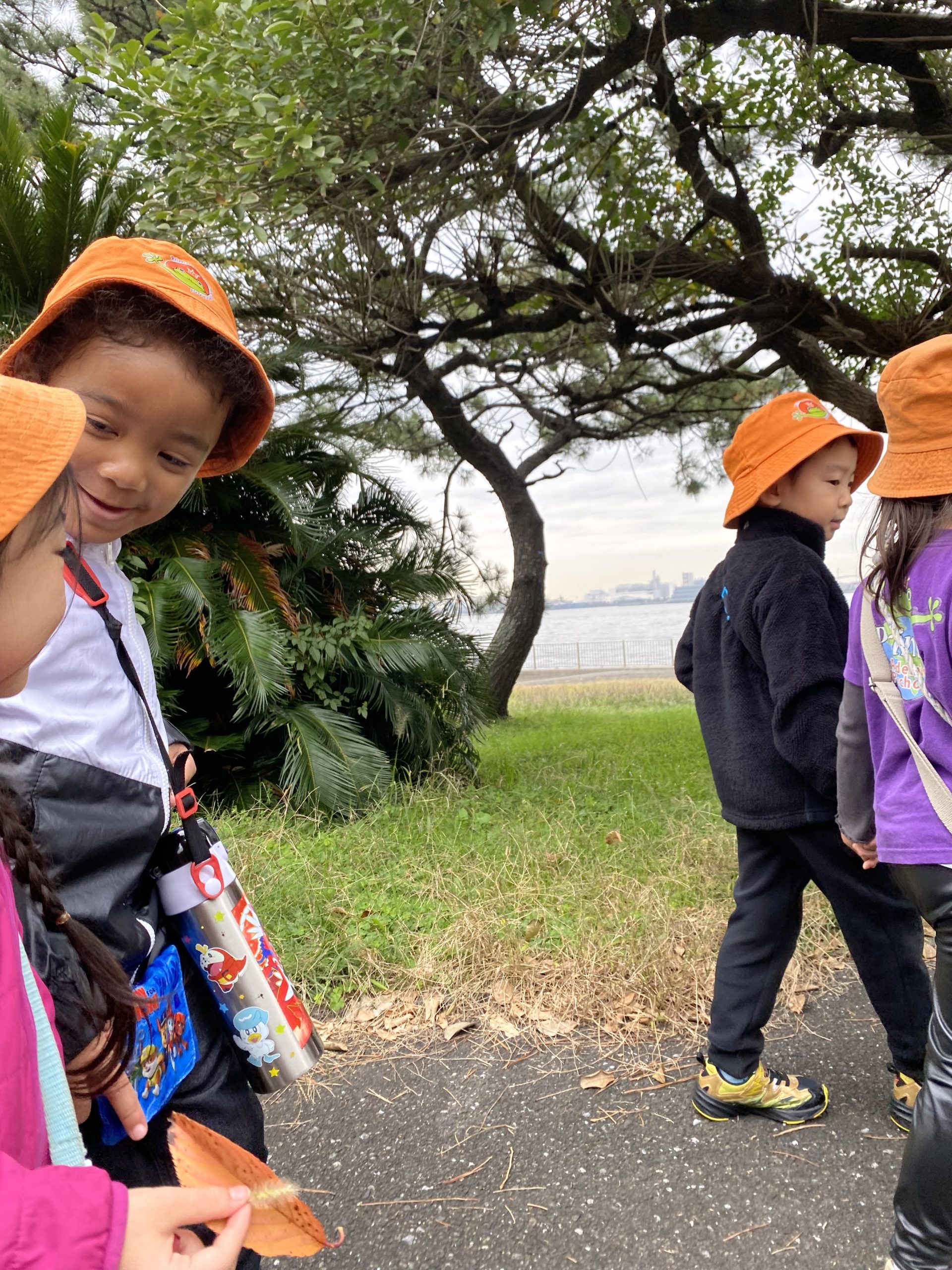Today the K2 and K3 class went to a nature park near a beach. All the students enjoyed the view of the beach and fall trees. Some kids waved bye to the planes in the sky. We observed the trees starting to change colors. We took a nice, brisk walk around the park, looking for fall leaves, acorns, and pine cones. We will use the leaves in an art project later this week. The weather was perfect for a stroll, not too cold and not too hot. Overall, it was a refreshing experience.