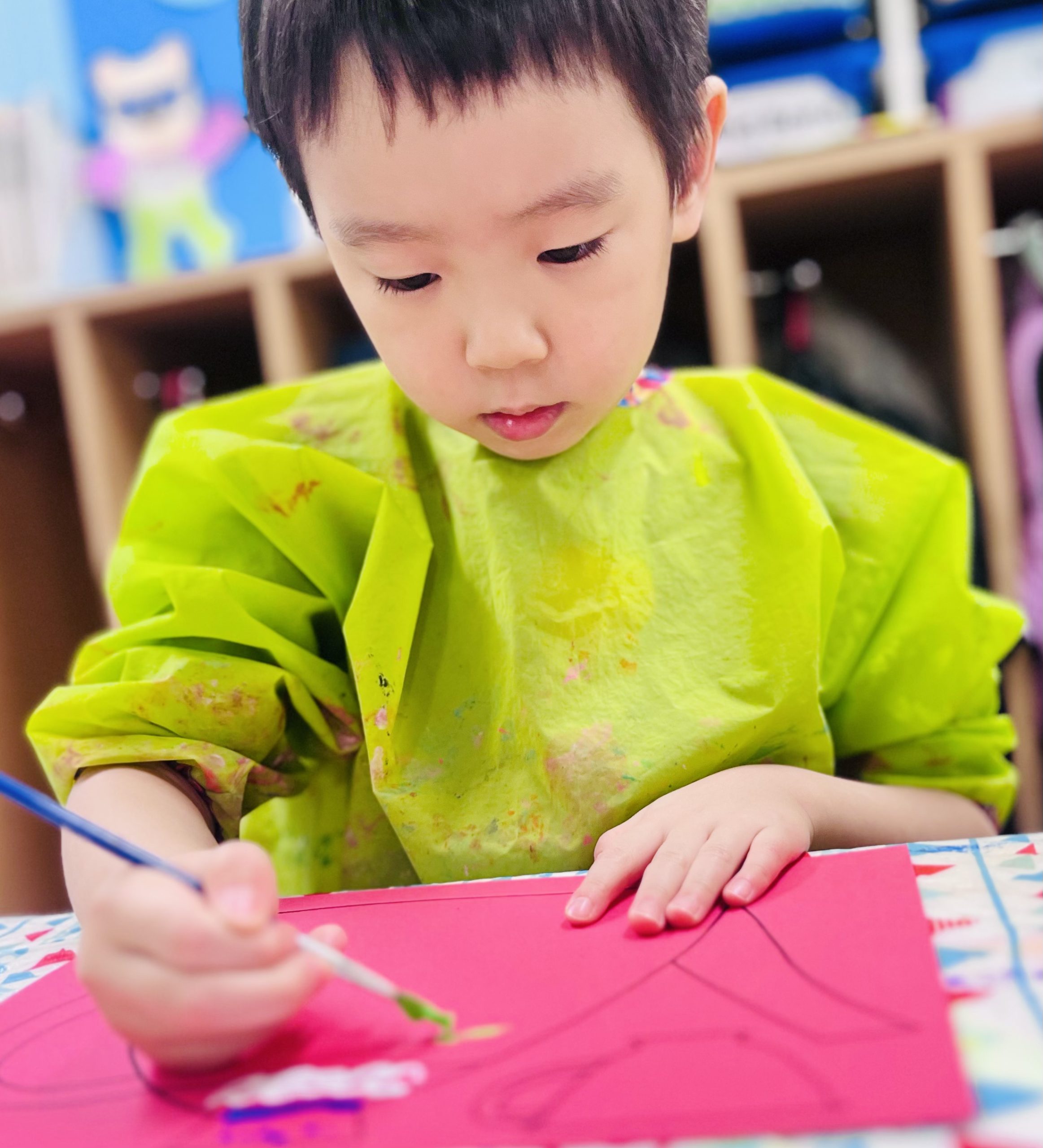 筆を使って作成中!とても集中して取り組んでいます。