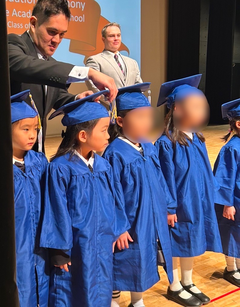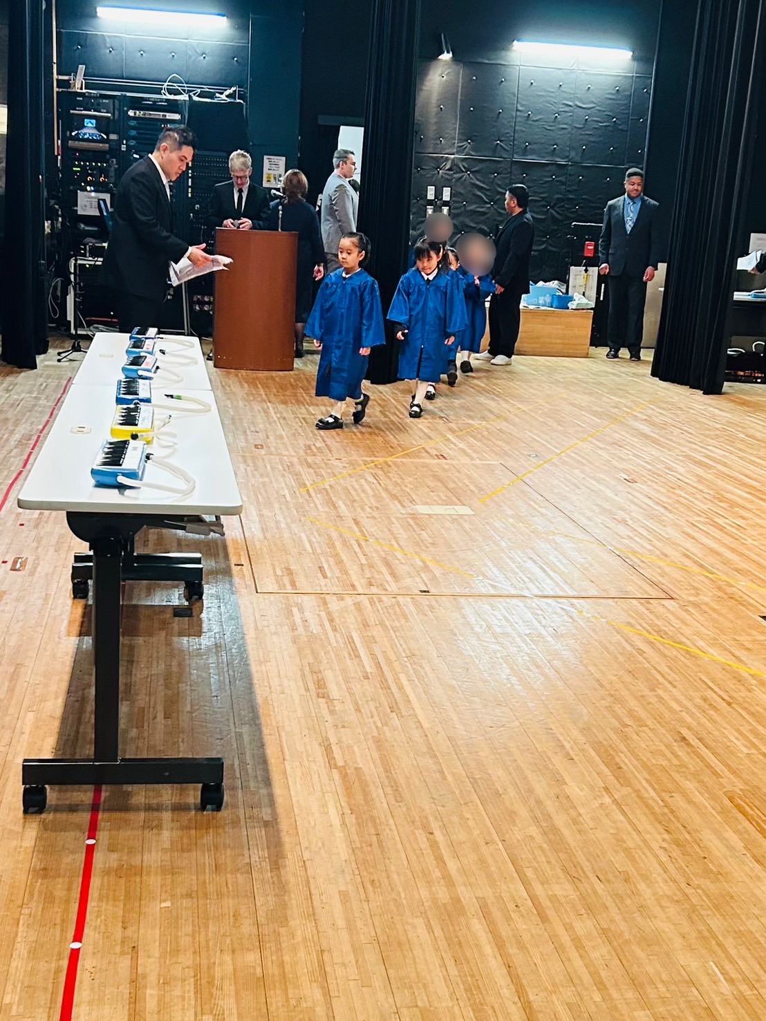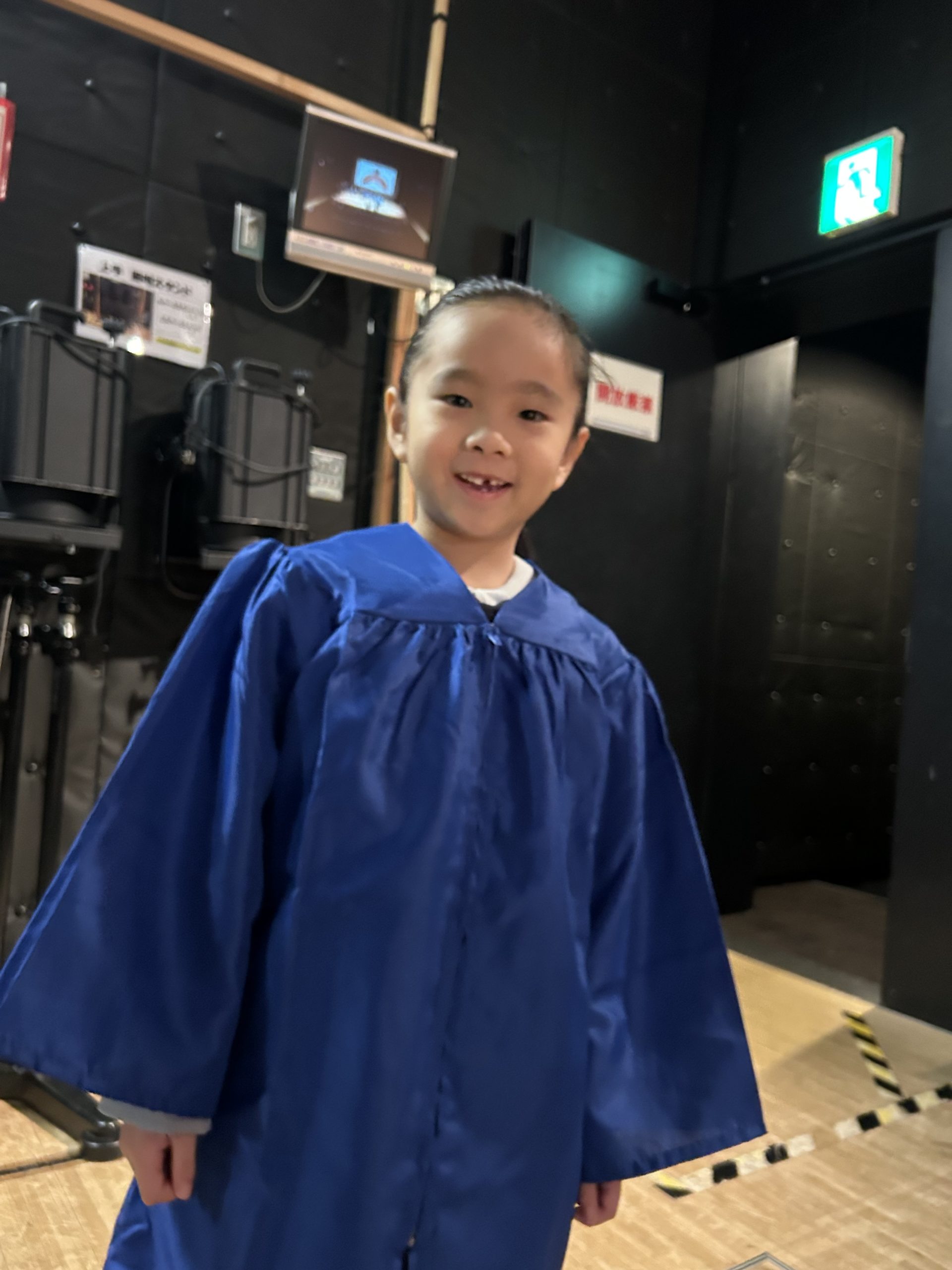 今日は年長さんの成長をお祝いする大切な大切な卒園式でした!青いガウンと帽子をかぶって舞台に立つ姿は、とても誇らしく、キラキラと輝いていました。
