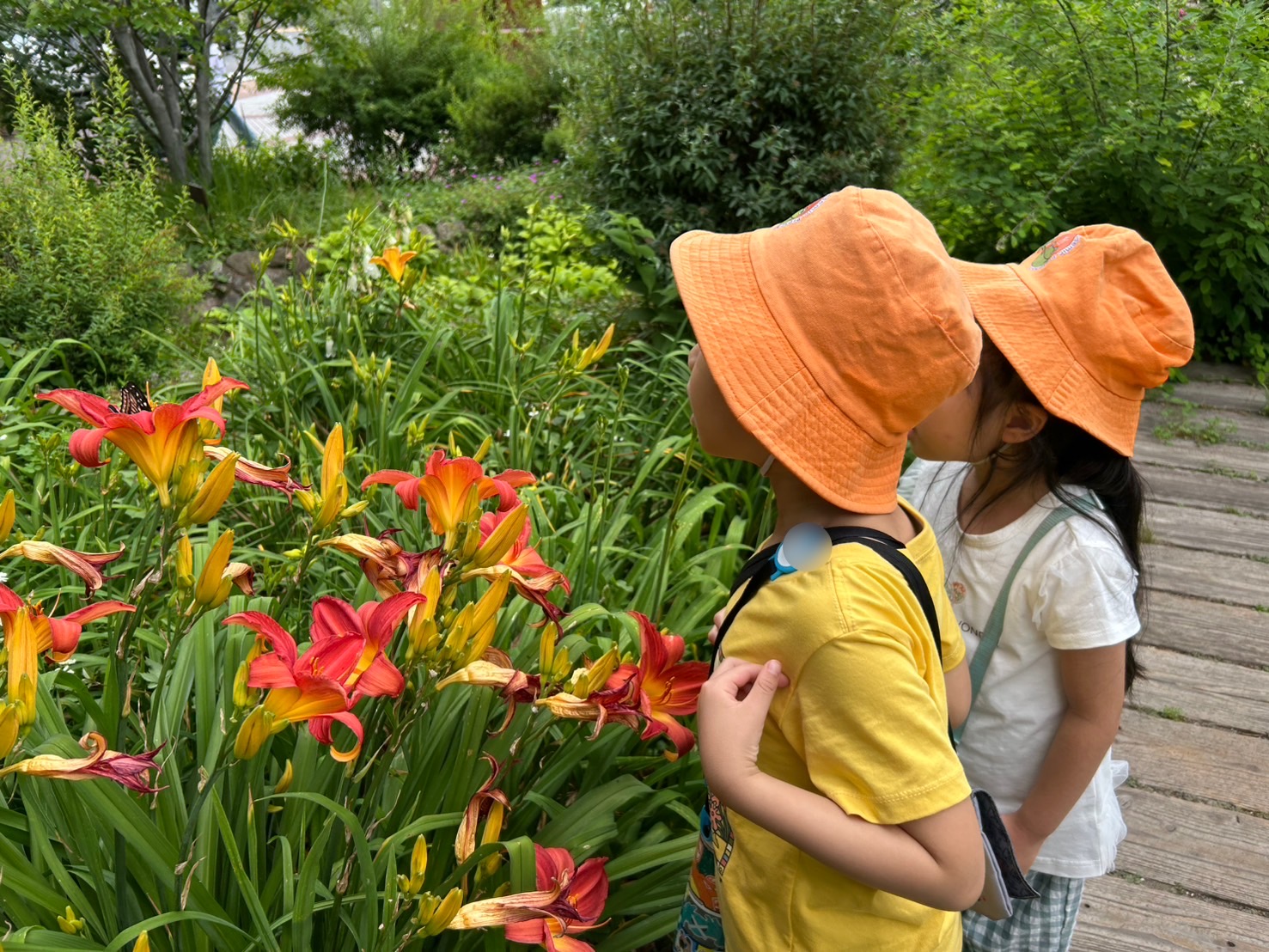 この前公園で放した蝶かな?と先生が子どもたちに質問すると、この色だったっけ?と話しに花が咲く年長さん。