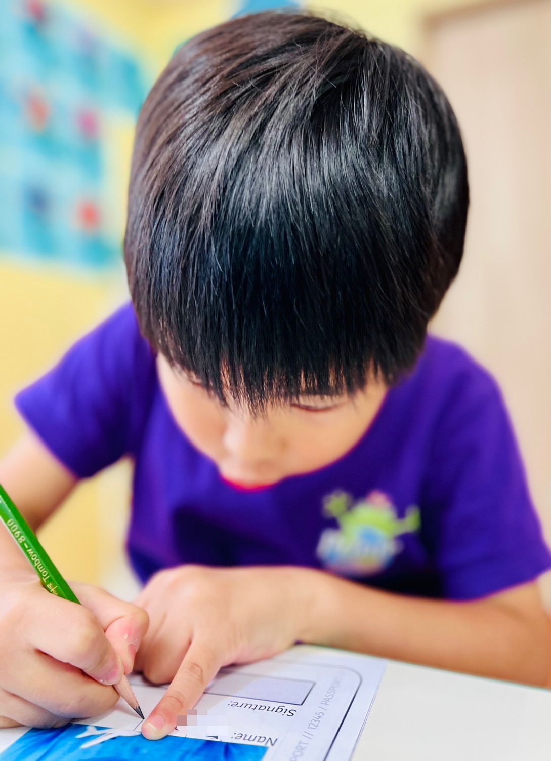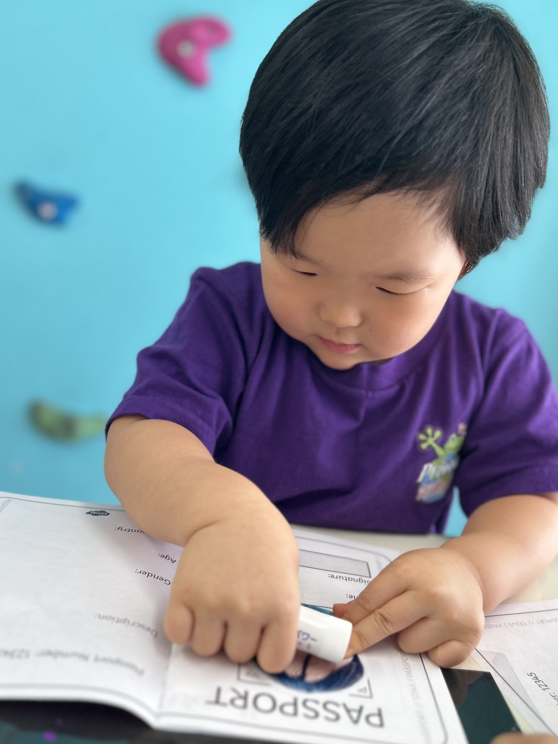 自分の写真を貼って、名前や年齢、髪の毛の色や目の色も記入しました。
