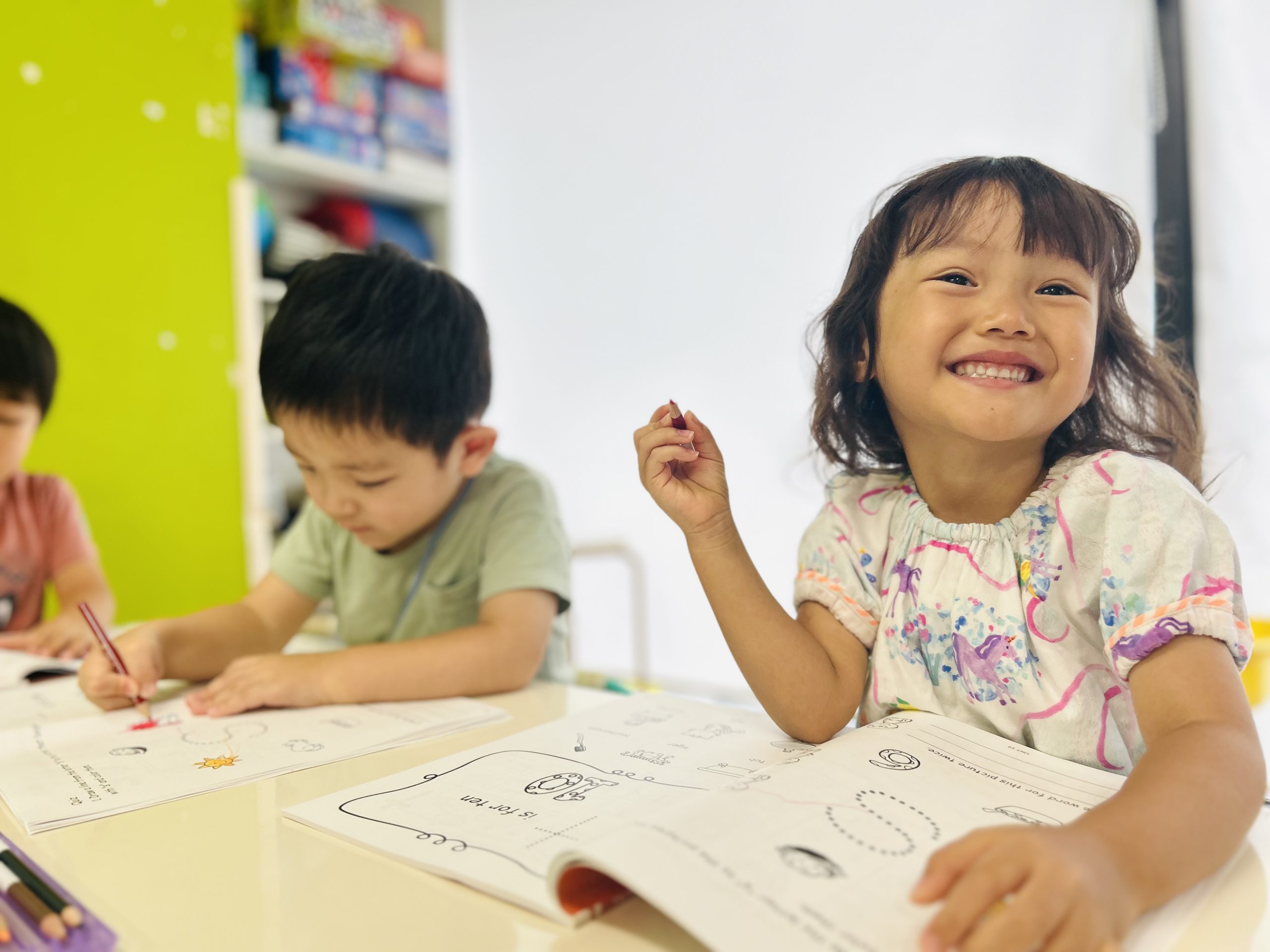 Phonicsクラスでは、きちんと座り落ち着いて授業に参加していました。集中力もどんどん高くなり、テキストを進めるペースも早くなっています。
