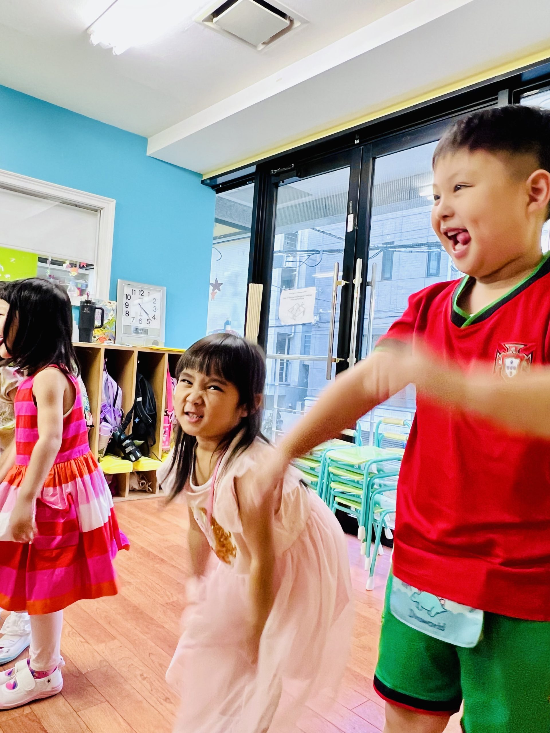 ハカと言えば、あの力強い表情が印象的ですよね。私たちも、なるべく怖い顔!を意識して挑戦。