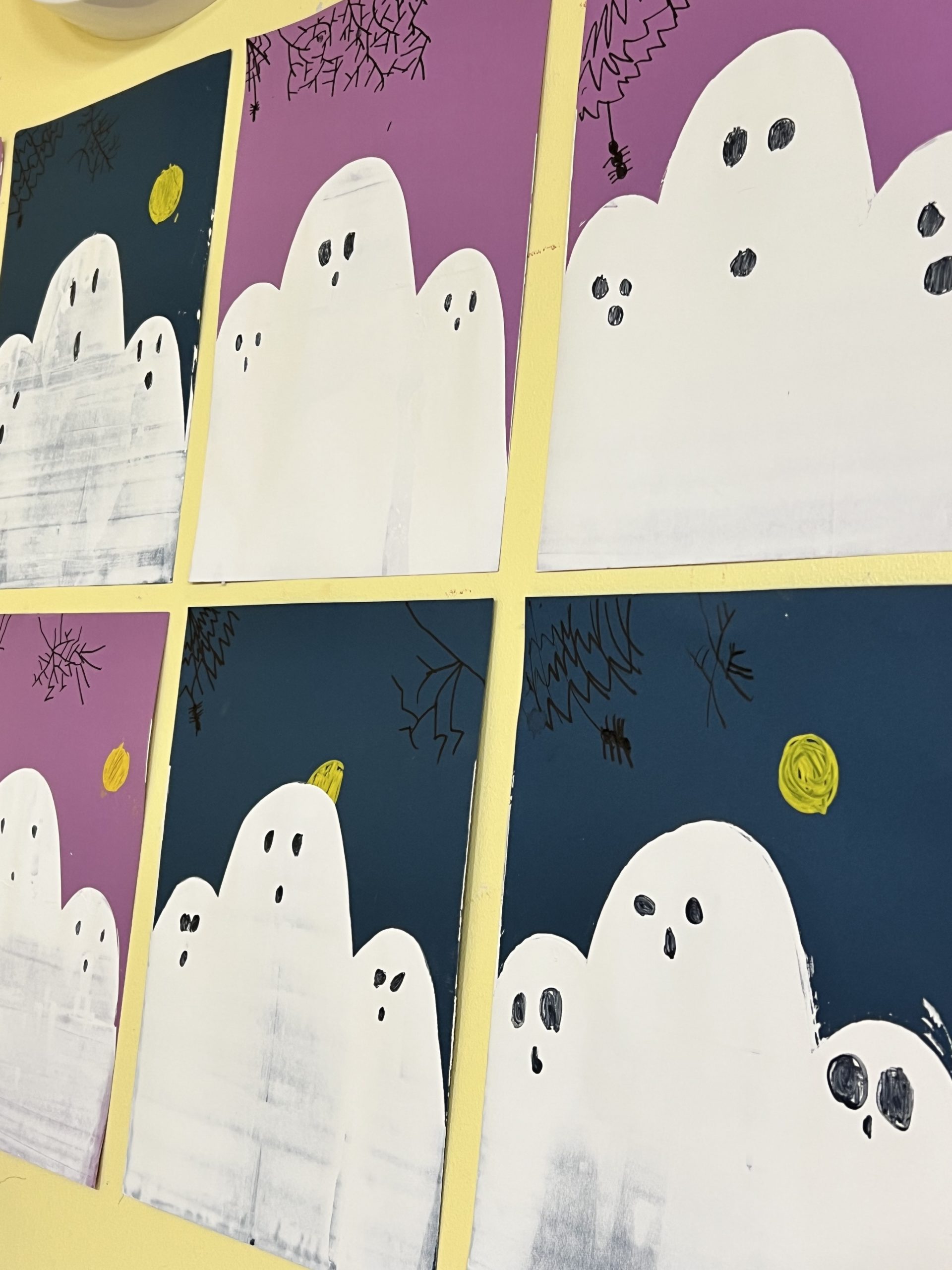 本日のアート活動では、ハロウィンに向けて、少し変わった技法を使ったゴースト制作に挑戦しました。