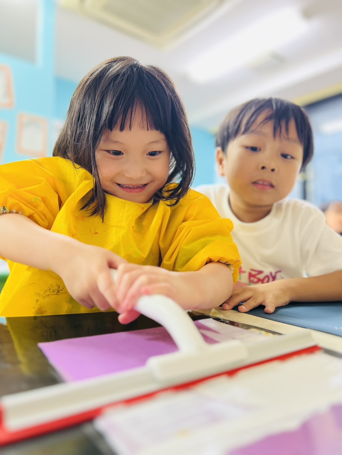 子どもたちは、初めて使う道具とその効果に興味津々で取り組んでいました。