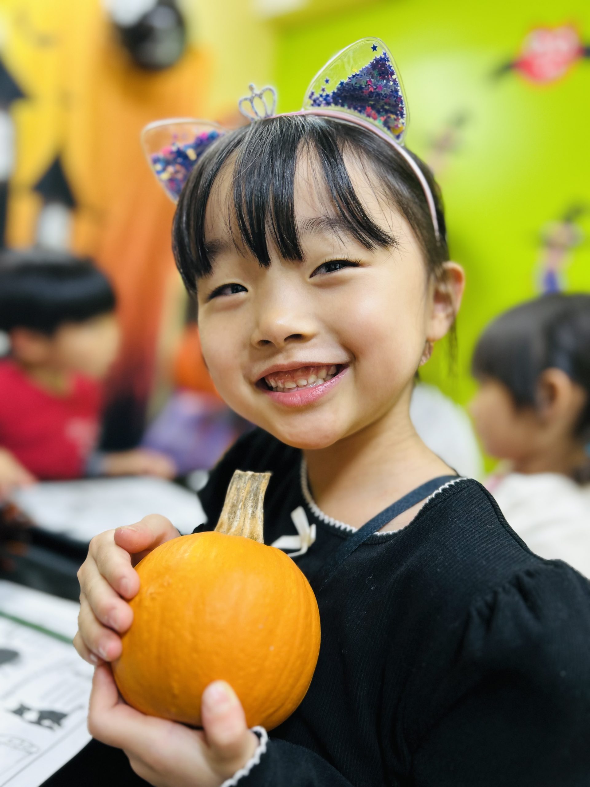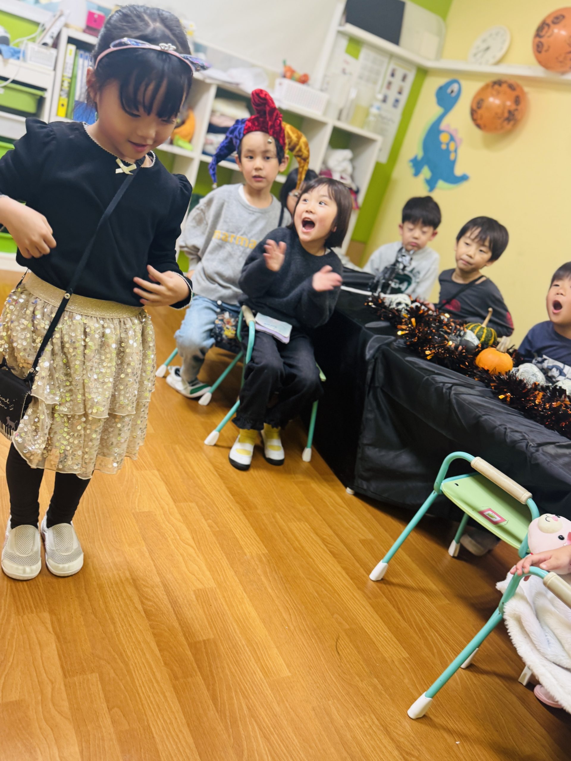 オオカミやピエロに変身したお友だちもいて、教室中が笑い声でいっぱいになりました。