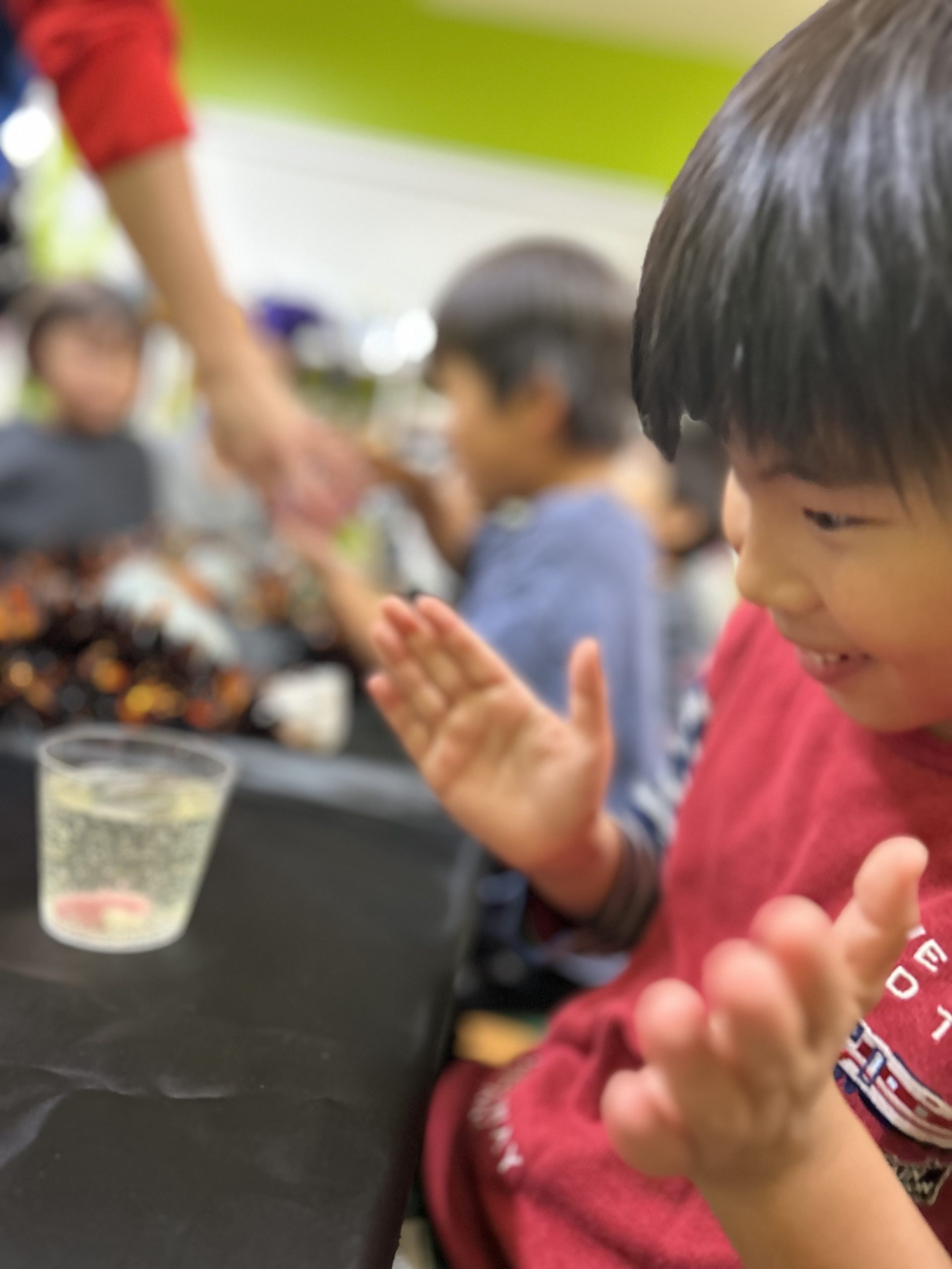 透明な液体にシュワシュワと泡が立ちのぼると、みんなの目がまんまるに!