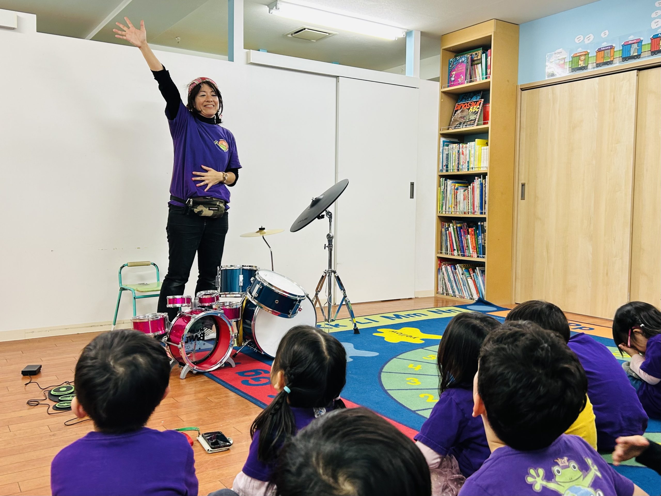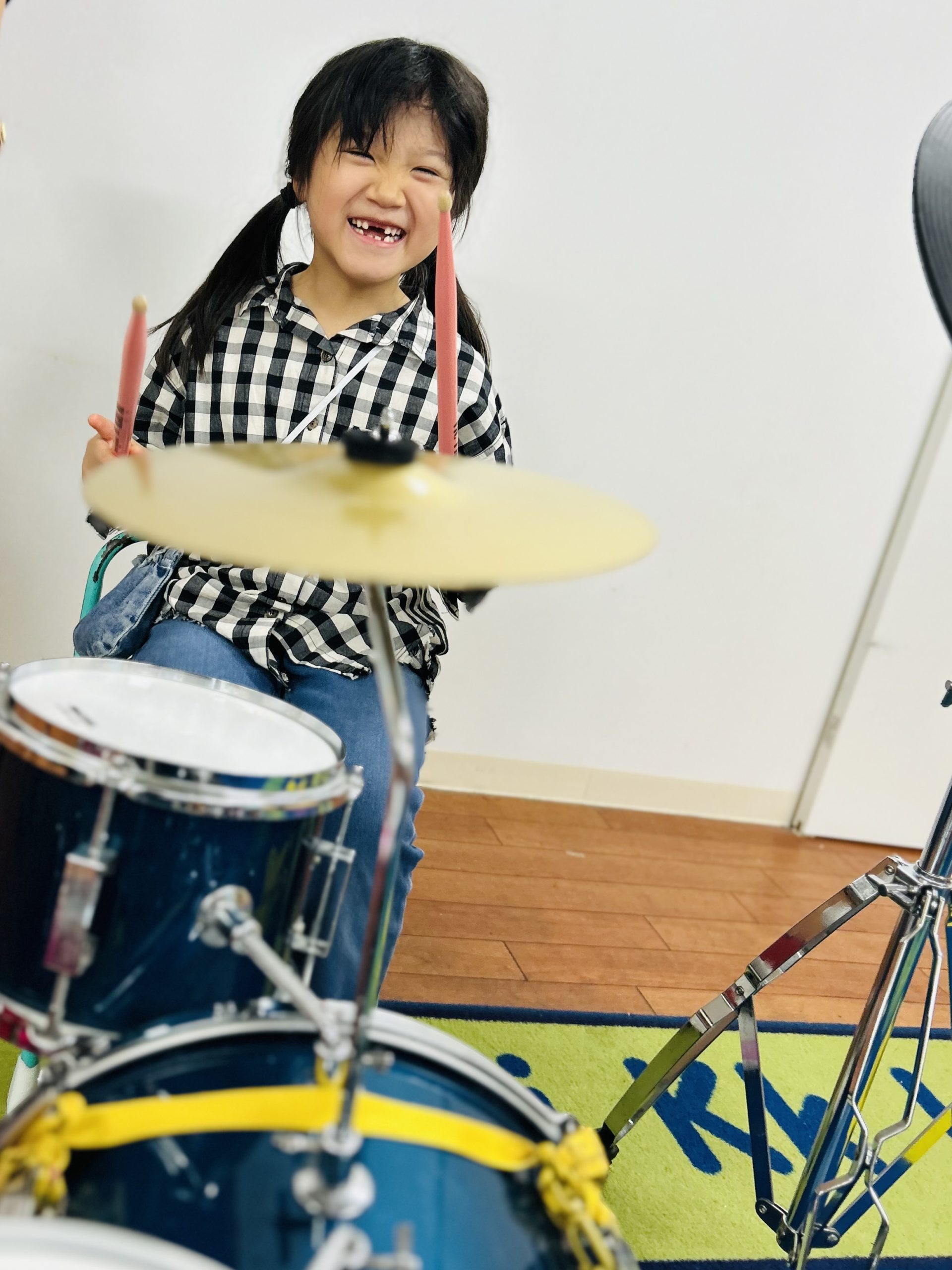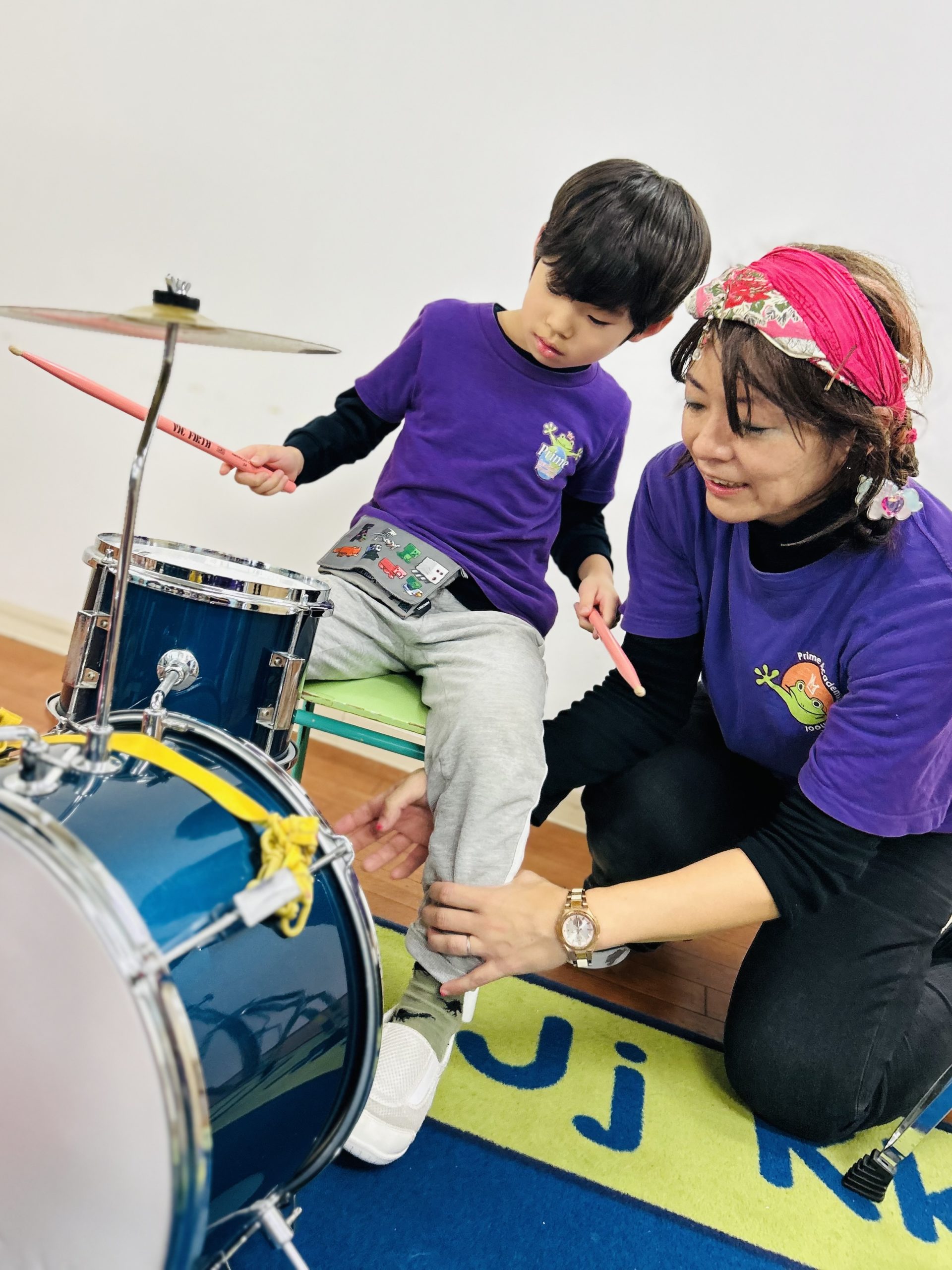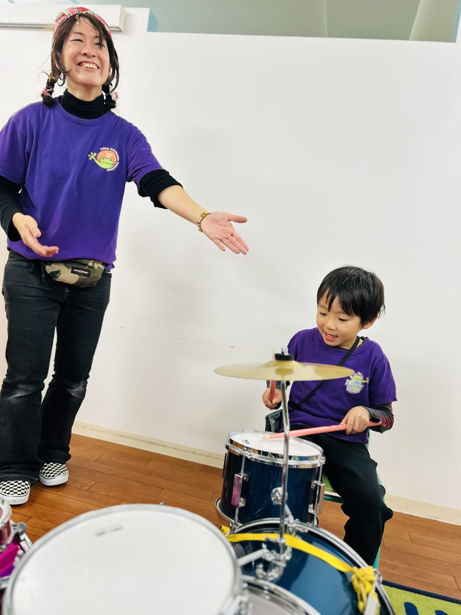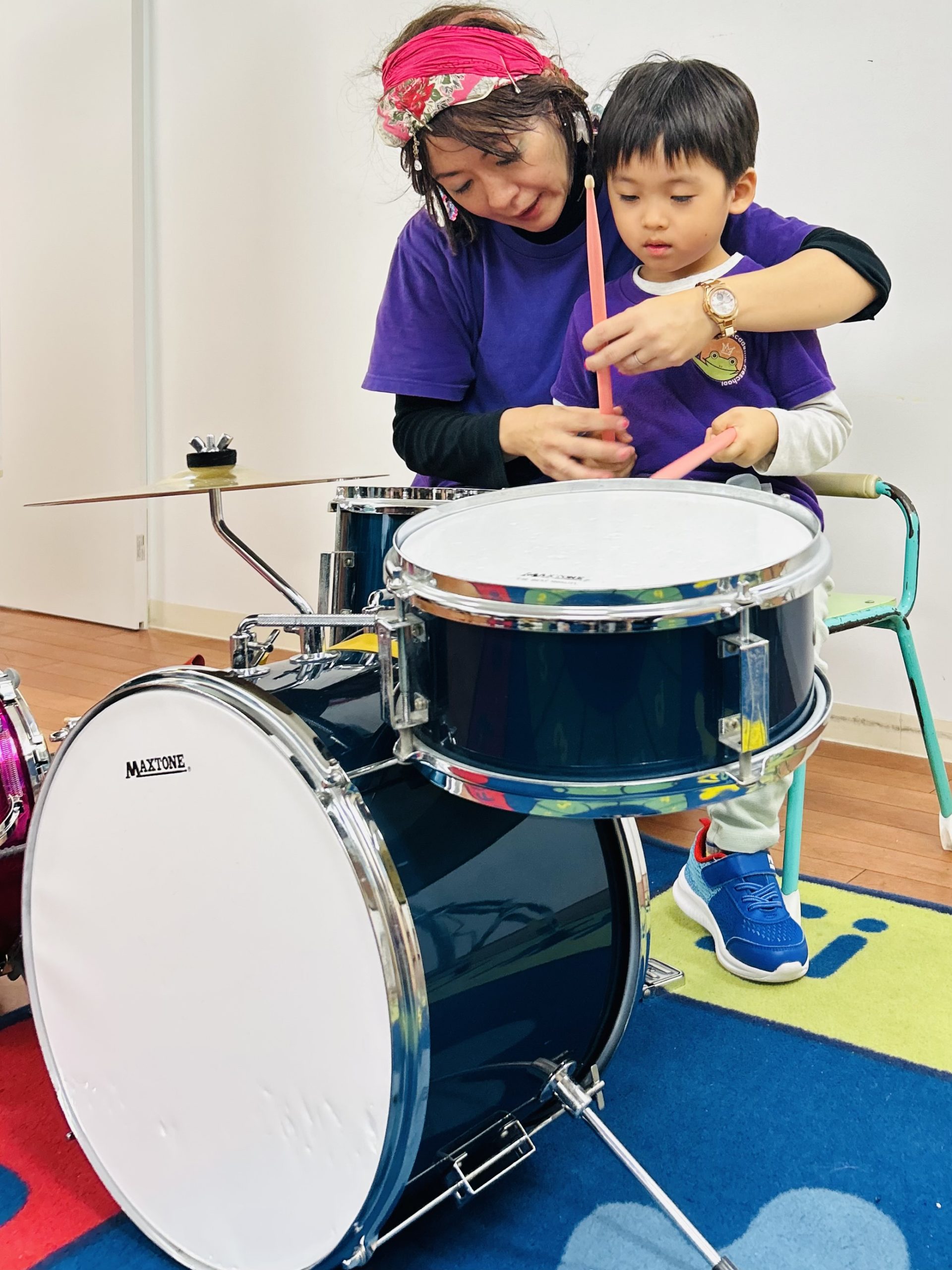子ども用のドラムでも大きな音が出てビックリしている子ども達と同じくらい先生もビックリしていました。