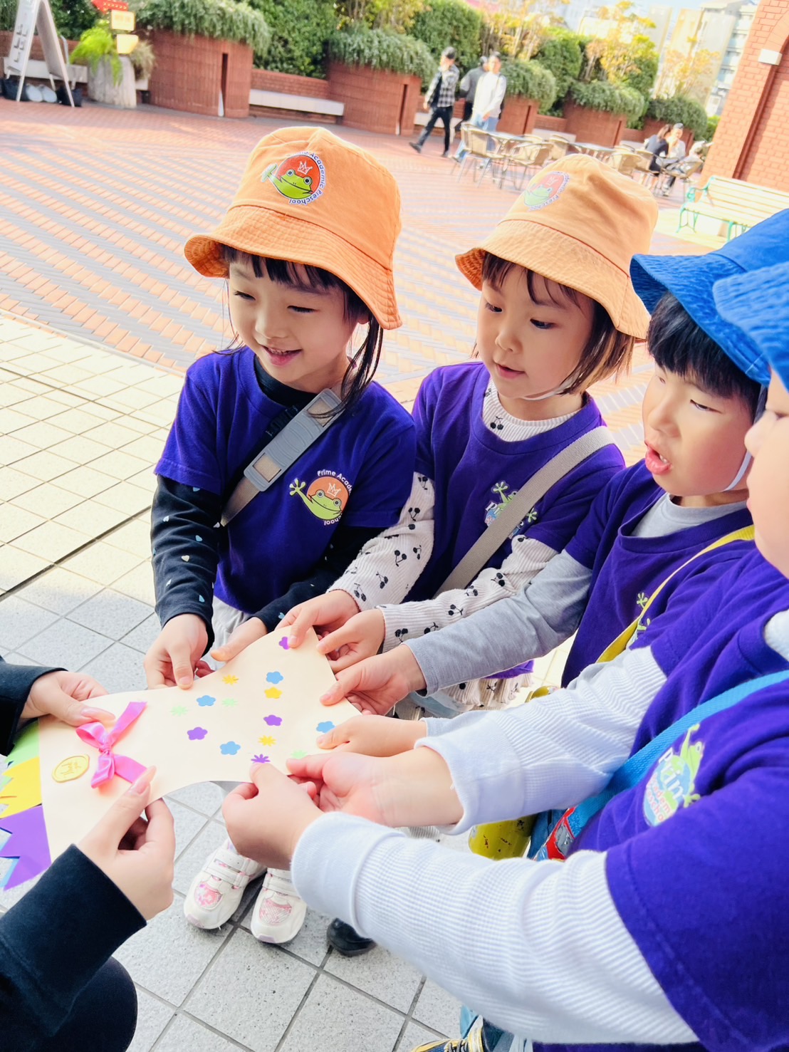 また、年中さんと年長さんは、ハロウィンのTrick or Treatingでご協力頂いたお店にThank youカードを届けに行きました。楽しい思い出をありがとうございました!