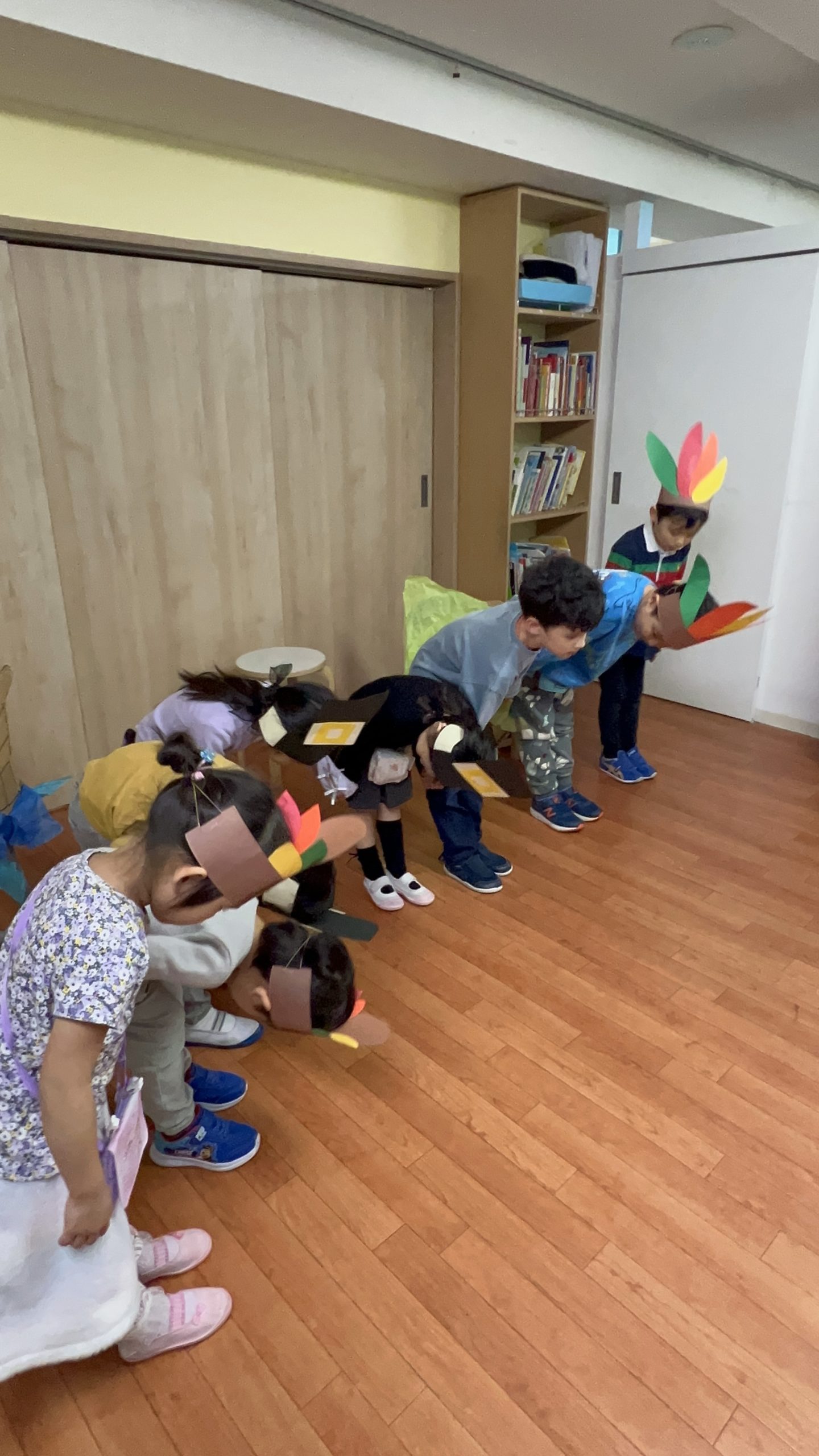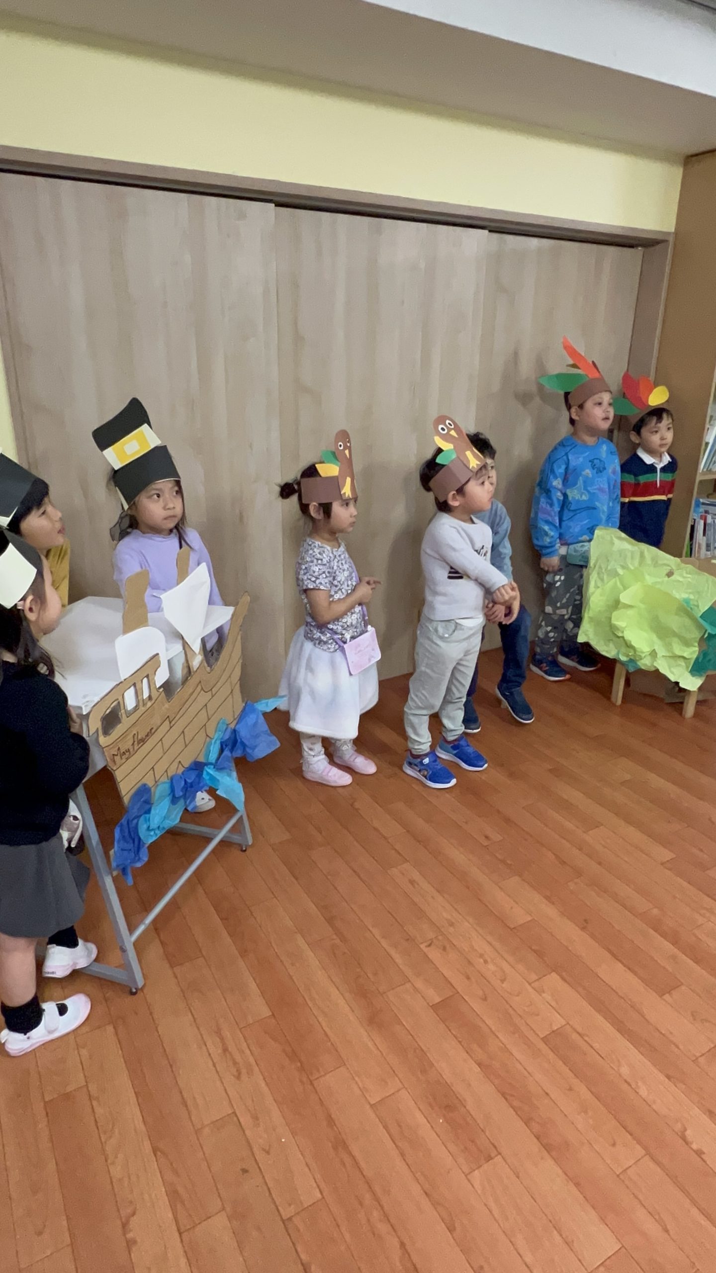 サンクスギビングの由来となったピルグリムたちのお話を、劇にして演じる活動を行いました。