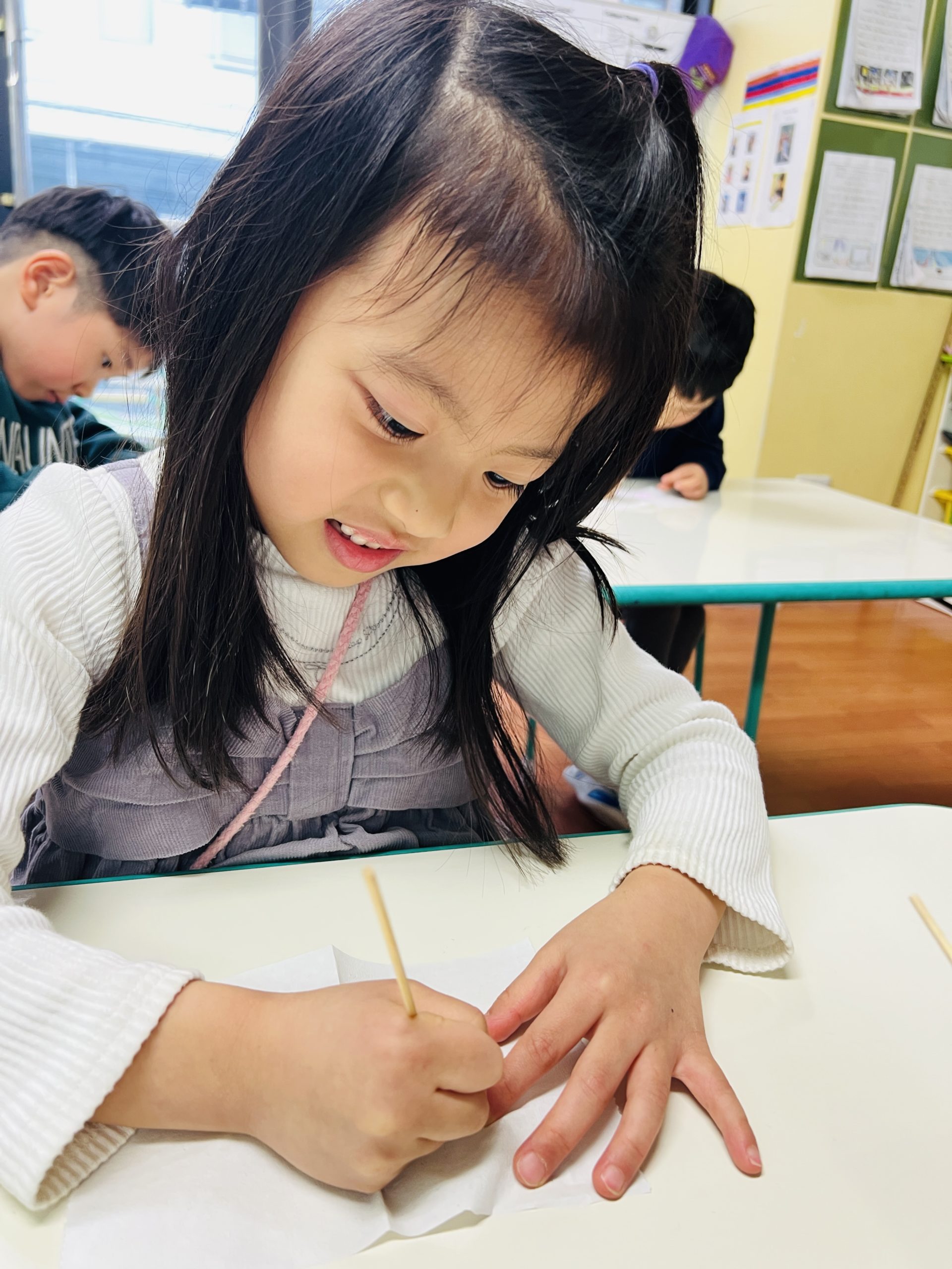 後半のアクティビティでは、日本の伝統的な「型抜き」に挑戦!