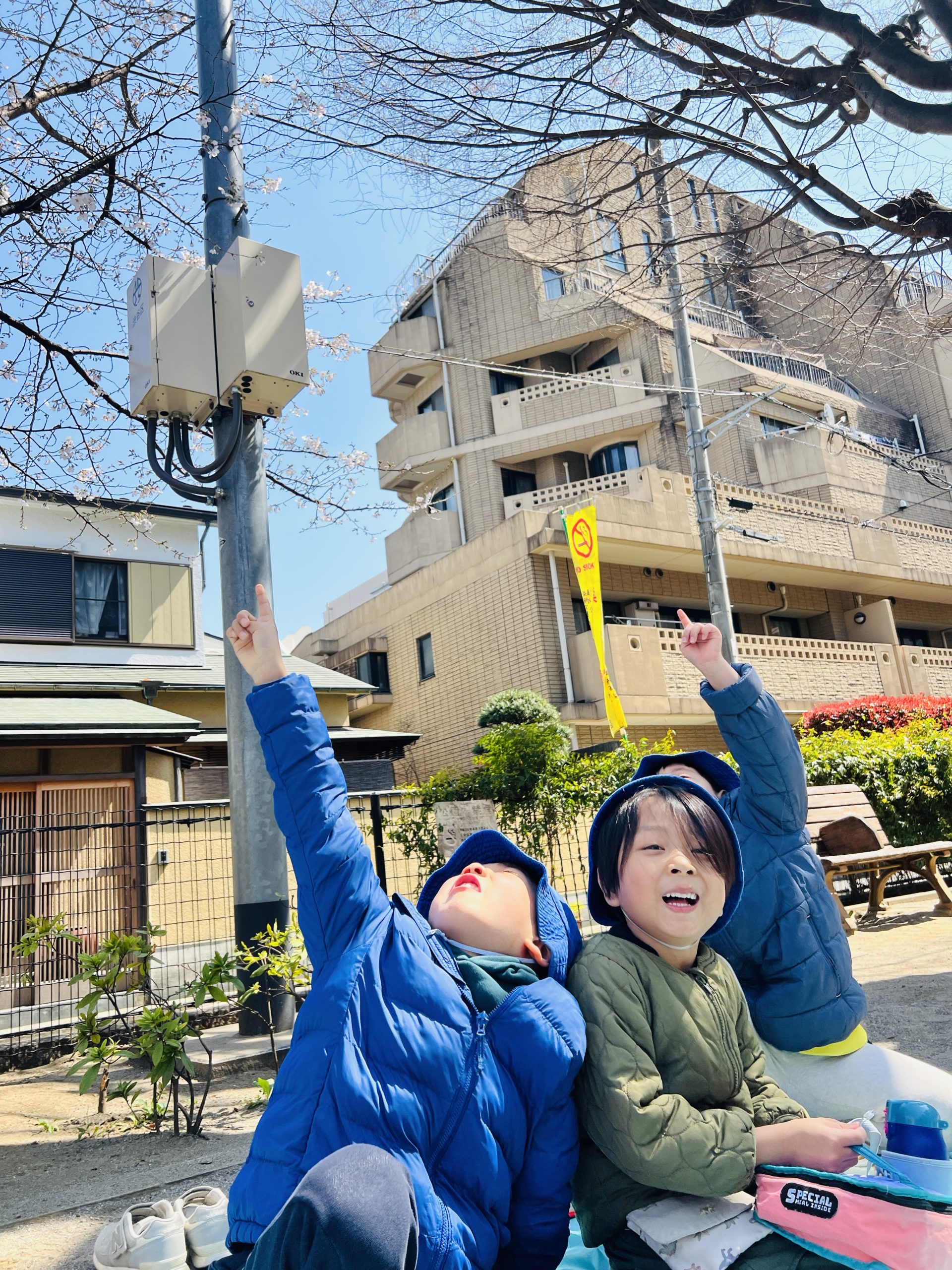 ポカポカとした春の陽気に誘われて、今日はK2クラスのみんなで近くの公園へお花見に出かけました!🌸
