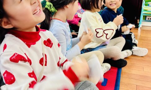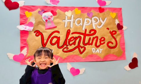 今日のFun Fun Fridayでは、バレンタインクラフトを作成しました。 ガムボールに見立てたカラフルなハートに、子どもたちはそれぞれメッセージを書きました。 素敵なメッセージカードが出来上がりましたね! また、バレ…