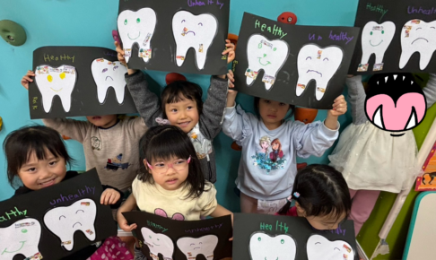昨日の年長さんクラスのアートの様子です。 手形を雪だるまに見立てて、冬らしい作品を作成しました。 今日の集合写真では、自然と笑顔が集まり、年長さんらしい少し大人びた雰囲気も感じられました。 毎日マイペースに過ごしている年…