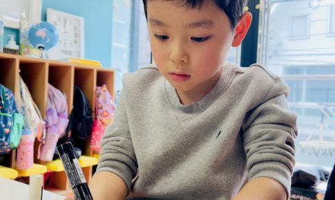 今日の Fun Fun Fridayはオリジナルのステッカー作りをしました。 丸や星、キャラクターなどを自由に組み合わせて、世界にひとつだけのステッカーを作りました。 同じ材料を使っていても、出来上がりはそれぞれ違い、子…