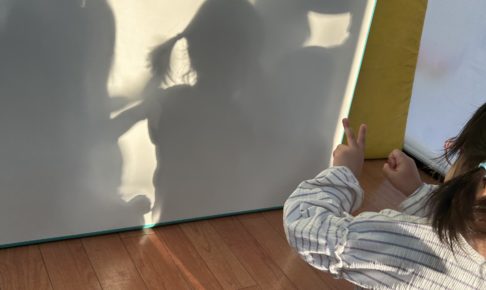 マンスリーカードの時間に、壁に映る影に気づいた子どもたち。 窓から差し込む光にできた影を見て、みんなで不思議そうにどうやったら影ができるのかを話し合い、影絵クイズを行いました。 5分ほどの短い時間でしたが、いつもの時間割…