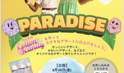 8月のスペシャルイベント「Puff Paradise」のご案内です! 見た目も楽しい、食べても美味しい、夏の思い出にぴったりな体験型イベントです♪ 当日は、わたあめマシーンを使った本格的なコットンキャンディ作りにも挑戦!…